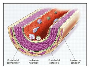 - Adhezyon (yapışıcı) moleküllerinin uyarılması, lökositlerin (akyuvarlar) endotele yapışması