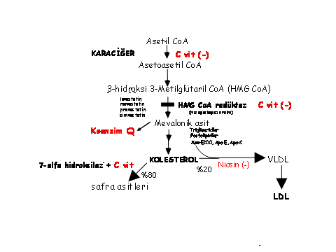 Şekil 2. Kan kolesterol düzeyini etkileyen vitaminler ve ilaçlar.