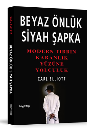 Bir hekim ve etik uzmanı olan Carl Elliott, “Beyaz Önlük Siyah Şapka” adlı kitabında, tıp dünyasına eleştirel gözle farklı cephelerden bakıyor. İlaç araştırmalarında denek olarak kullanılan kobayların cephesinden, kimi düzmece olan bilimsel makaleleri kaleme alan hayalet yazarların cephesinden, doktorları belirli ilaçları reçeteye yazmaları için manipüle etmeye çalışan tıbbi satış mümessillerinin cephesinden, tıp etiğini meslek edinen ancak endüstrinin maşasına dönüşebilen biyoetik uzmanlarının cephesinden…