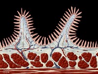 Şekil 1. İnce bağırsak vilüsleri (üzerlerinde mikrovillüsler var) ve kriptaları.