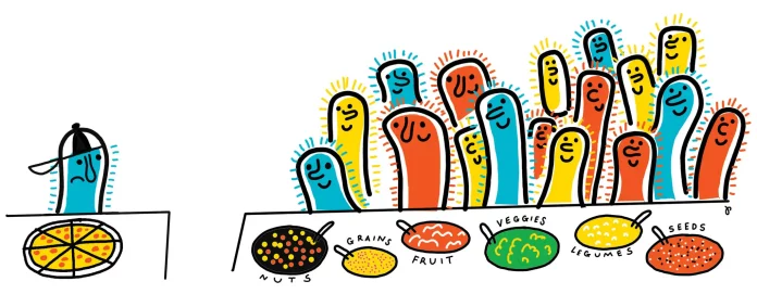 Tüm hedefimiz çocuğumuzda bağırsak bakteri çeşitliliğini maksimuma çıkarmak olmalıdır. Eti tamamen ortadan kaldırmadan bir yandan sebze çeşitliliğini artırırken fasulye ve mercimek gibi bakliyatları sıklıkla ana protein kaynağı haline getirmeliyiz. Beyaz pirinç, beyaz un, makarna, ve renkli ambalajlı hemen hemen her şey düşük kaliteli gıda olarak görülmeli ve beslenmeden çıkarılmalıdır.