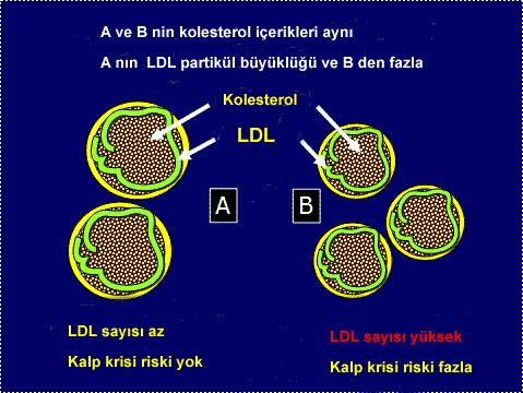 Partiküller üzerinde de rastlantısal zorunluluk gereği kolesterol vardır –partiküller çok olduğu için- kolesterol de yüksek görülür, bu göreceli yani üretim ve hücresel kaynaklı olmayan kolesterol yüksekliği demektir, üretim kaynaklı olmasa da, kanda partikül sayısı ve kolesterol değerleri kanda (göreceli olarak) yükselmiştir.