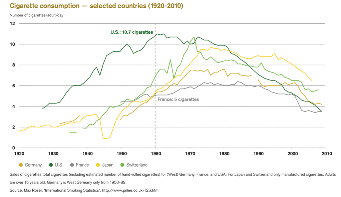 Şekil 1. 1920-2010 yılları arasında sigara tüketimi