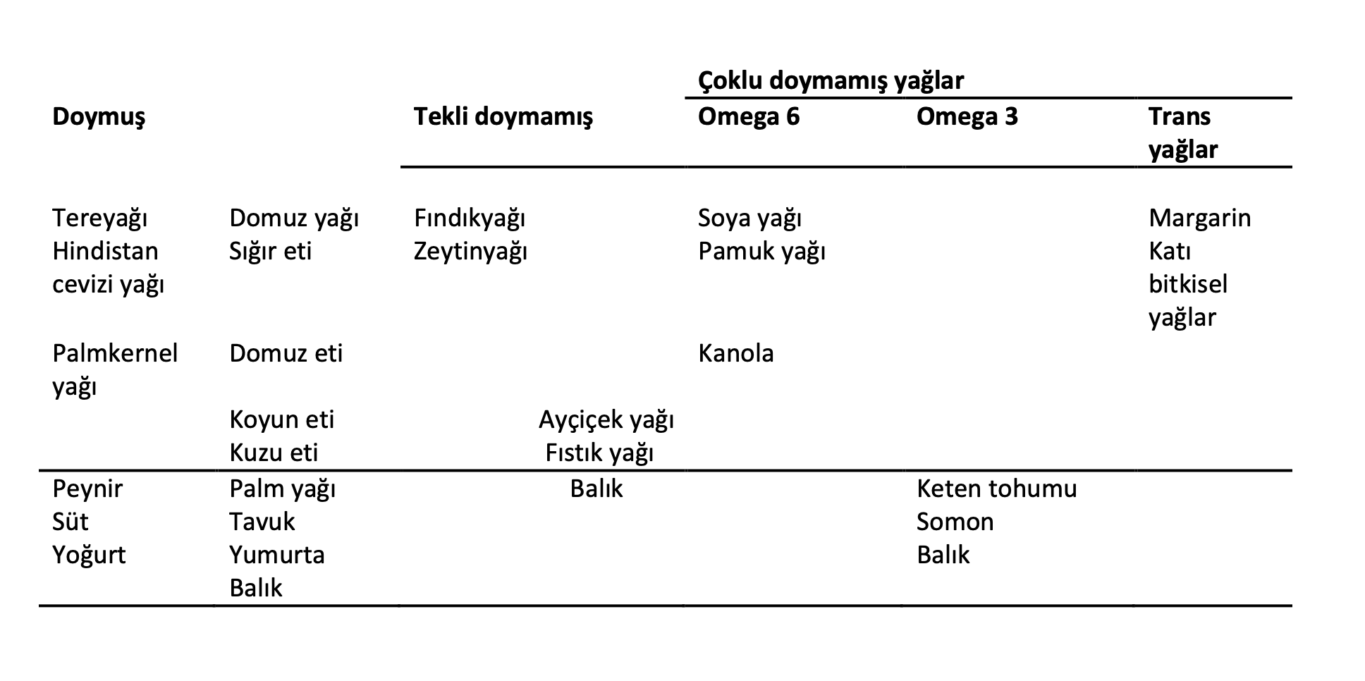 - Doğal doymuş yağ alımı (tereyağı, iç yağ gibi) ile kalp damar hastalık riski arasında herhangi bir bağlantı bulunamamıştır.